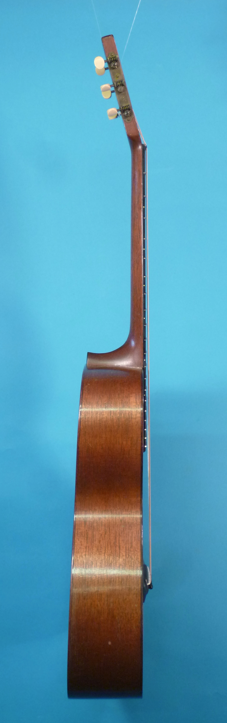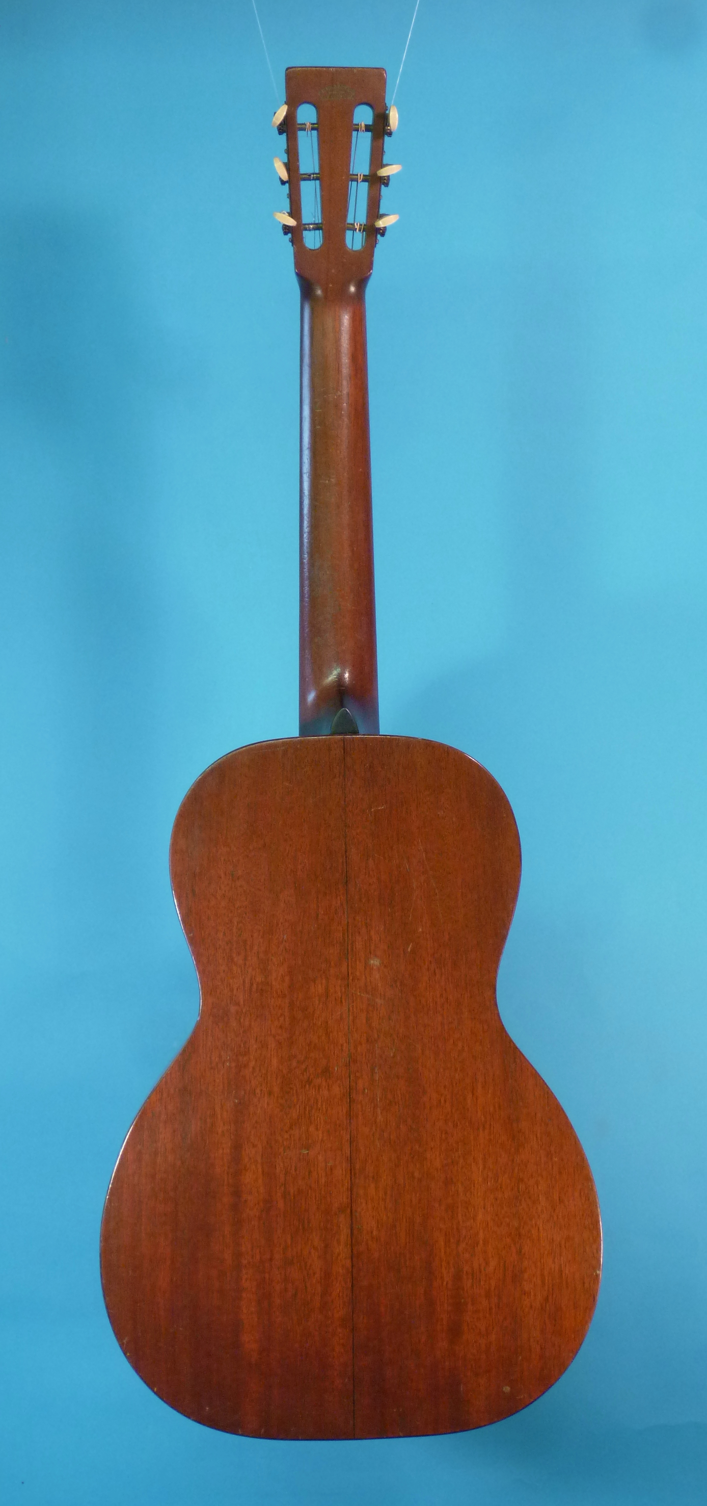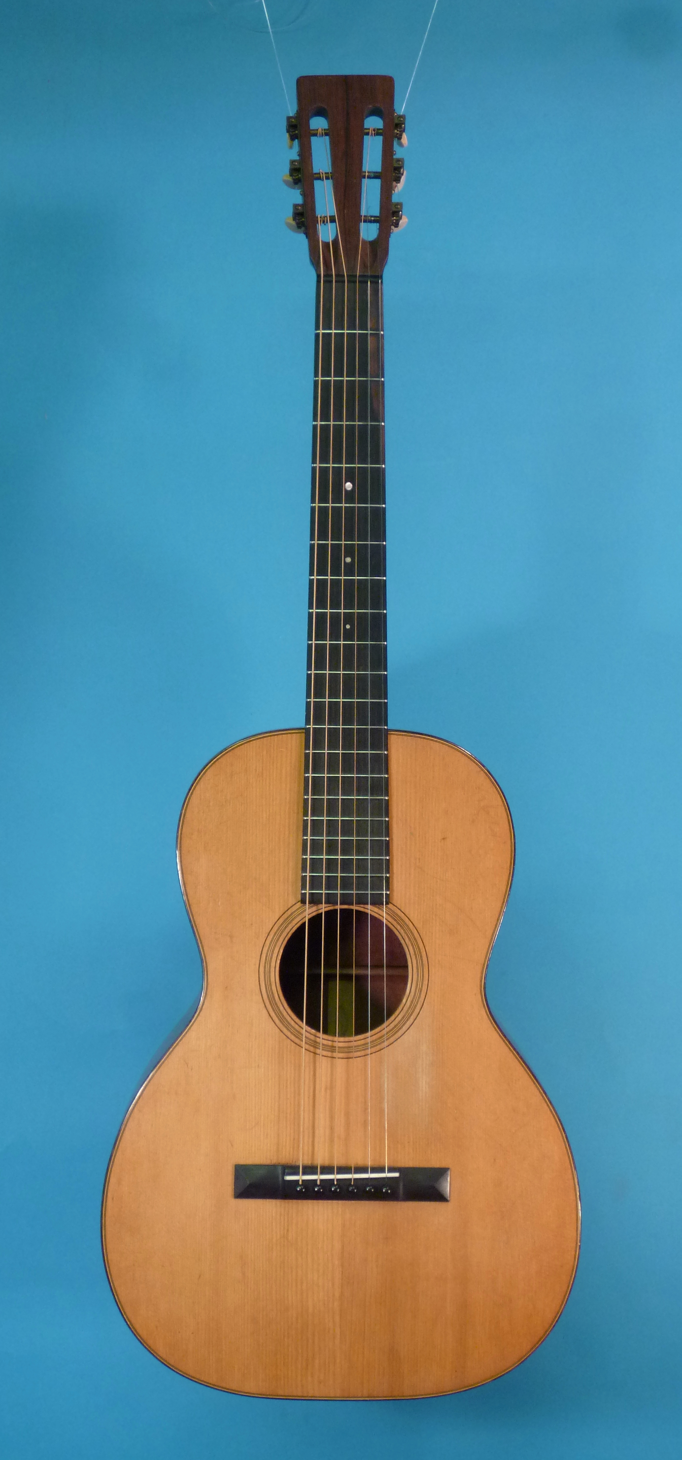 Very good condition, all original except reproduction pyramid bridge with slanted saddle. Fresh neck set and fret service; set up with light guage strings. No cracks on top or back; one 3" crack in side, invisibly repaired; all work our shop. Full, powerful, balanced sound. SOLD w new HSC.