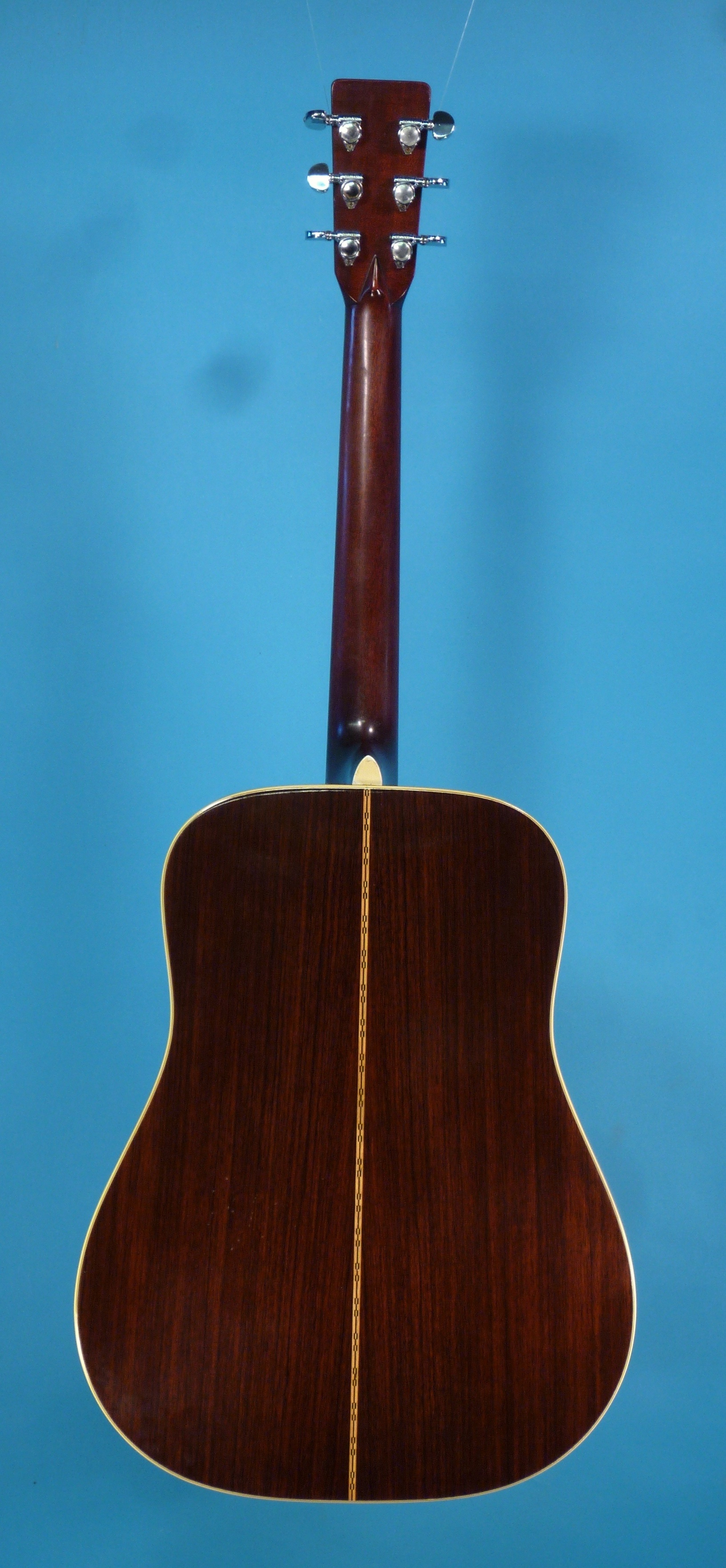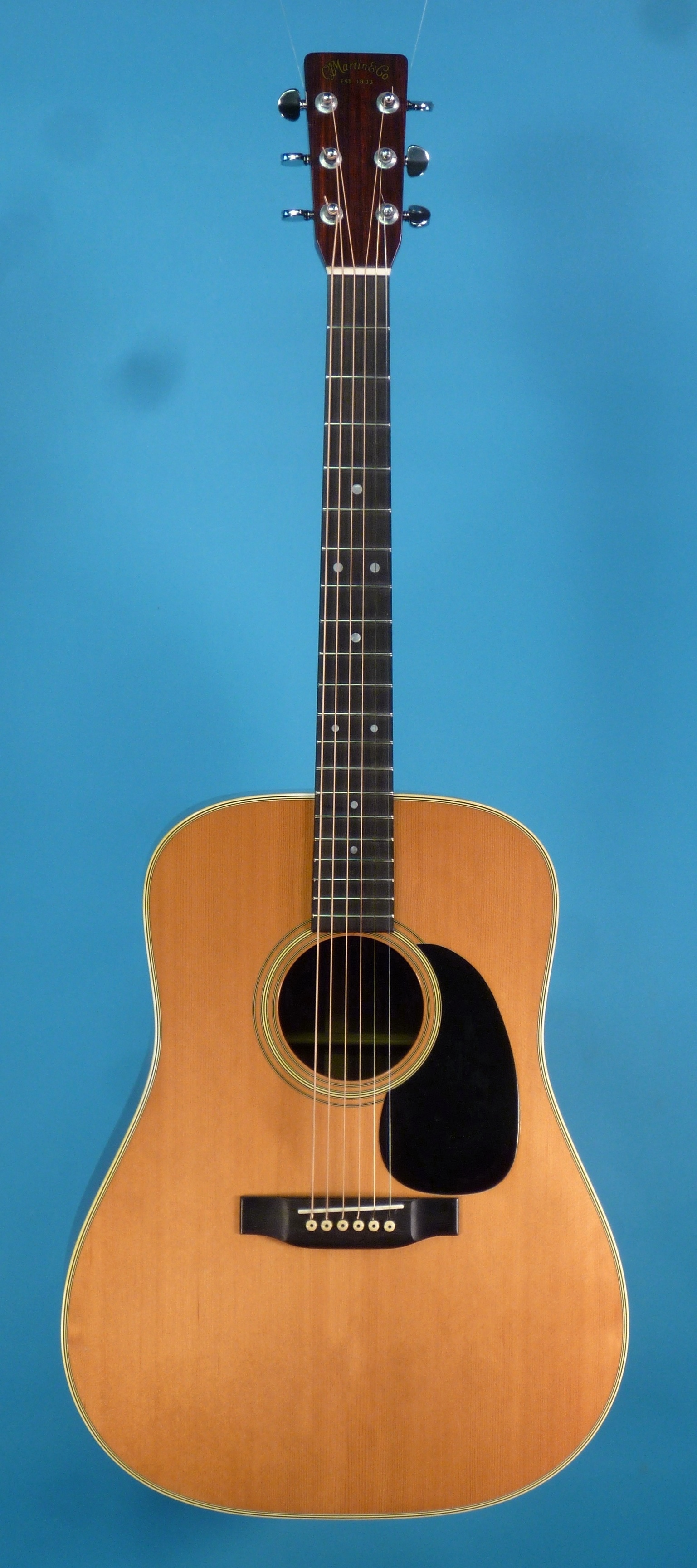 Martin D-28 Guitar, 1973Very Good condition, original finish. Fresh neck set and refret. New replacement pickguard, professionally repaired crack at heel (did not go through to headblock.) Low action with light or medium guage strings; Loud and clear. The bluegrass standard! w/ new HSCSOLD