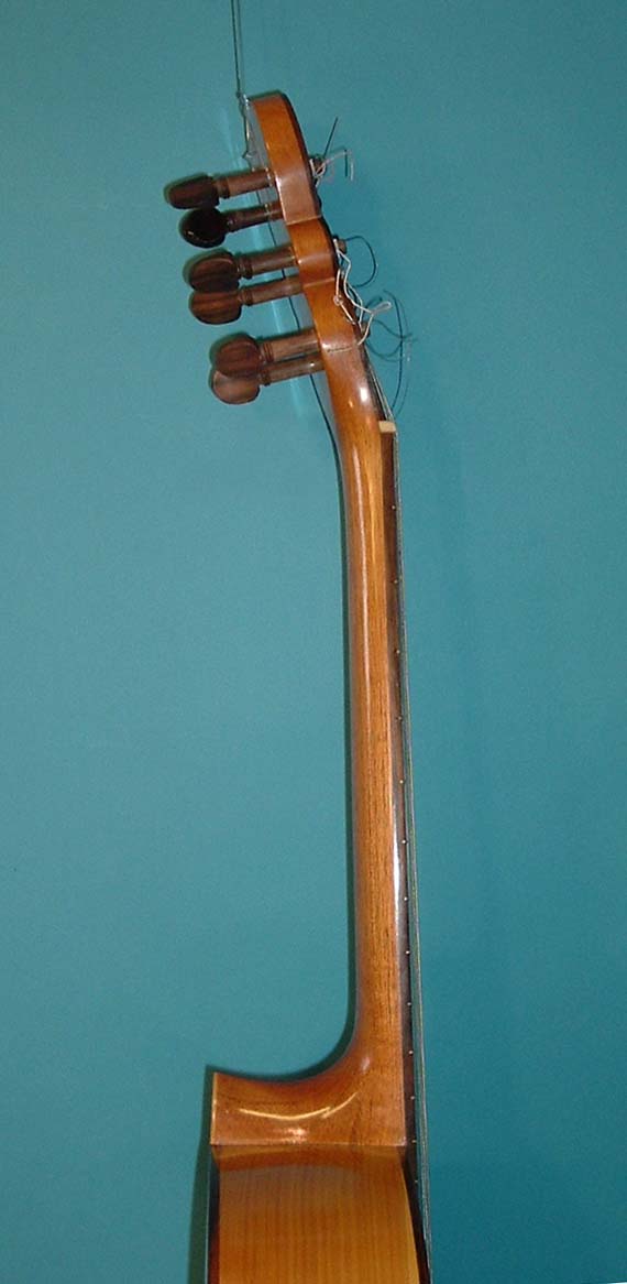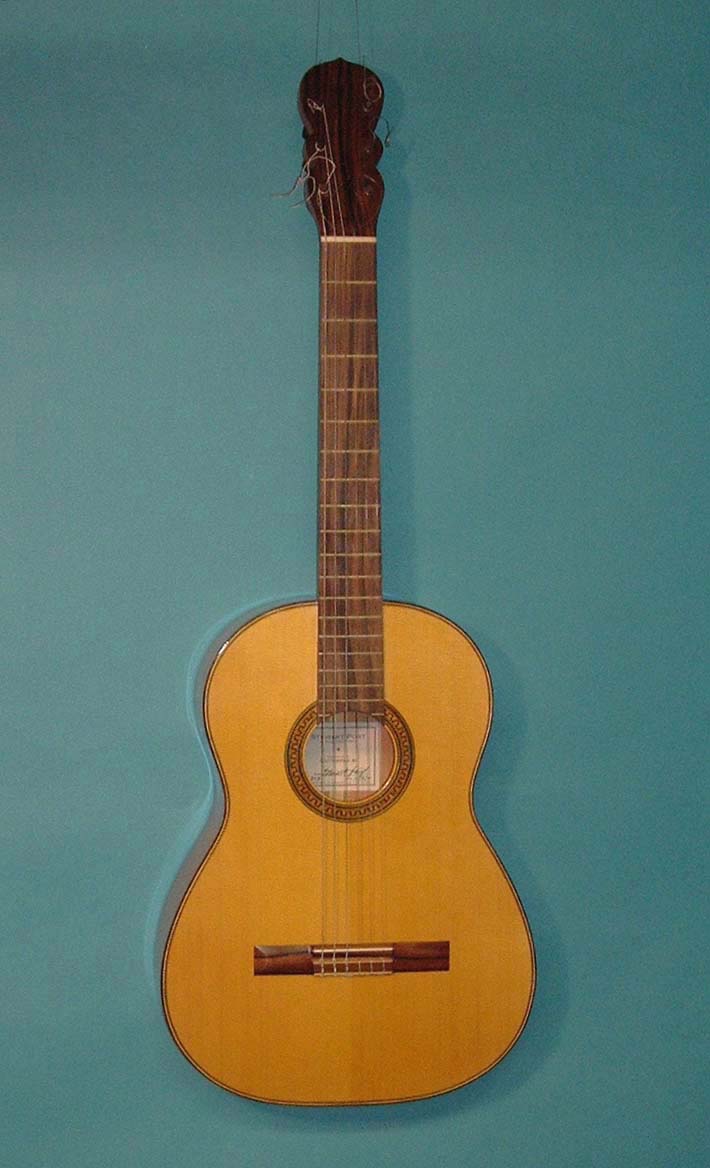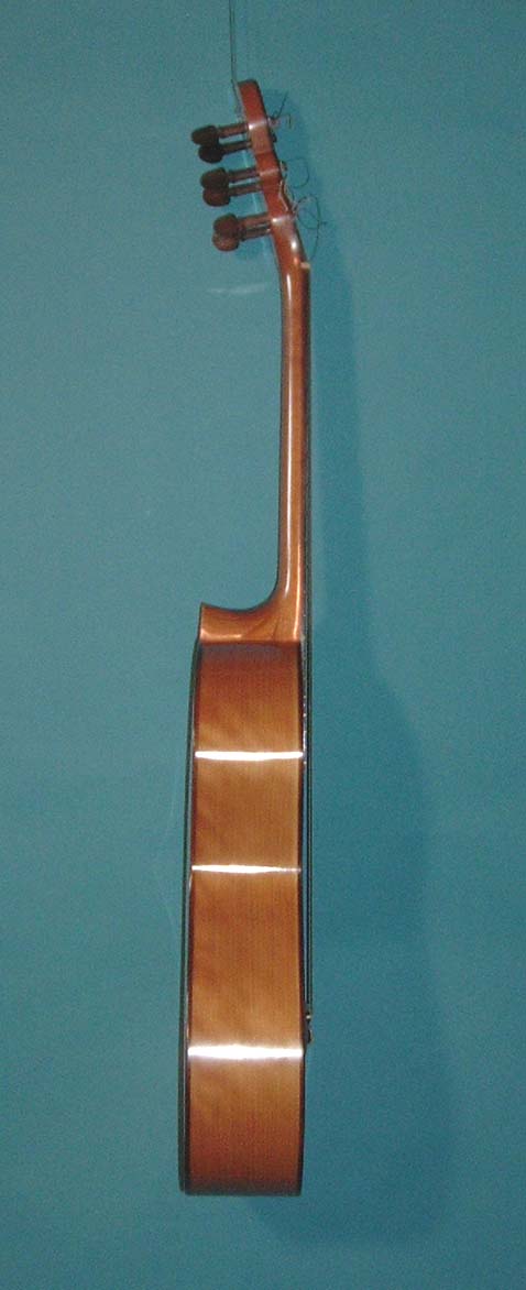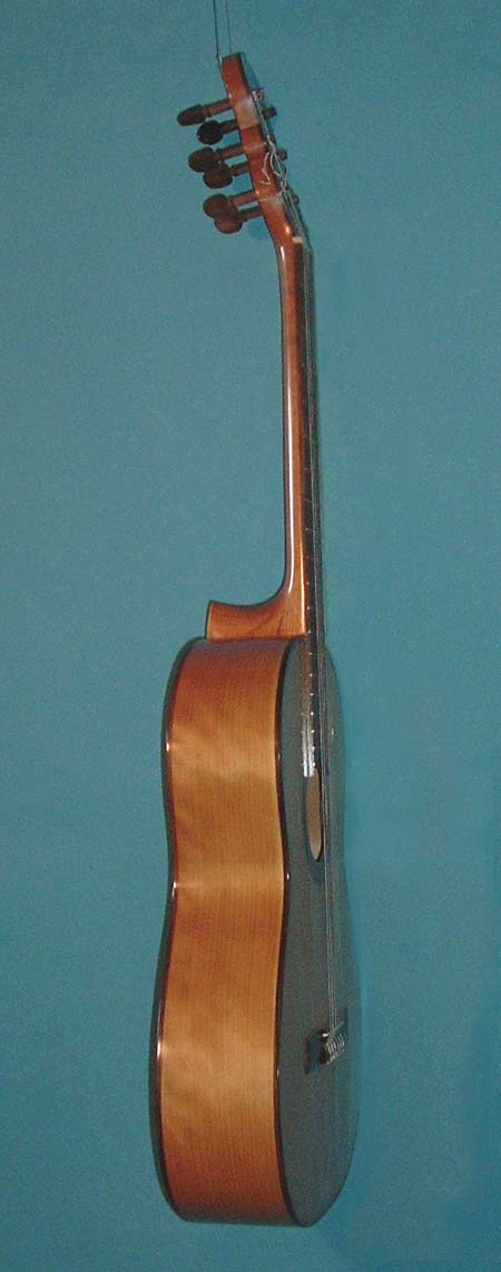 Englemann Spruce top, Mexican Cypress back and sides, Spanish Cedar neck, Macassar Ebony bridge, fingerboard, pegs and binding. Medium amber French Polished shellac finish. Traditional Spanish construction throughout. 660mm (26") scale. |